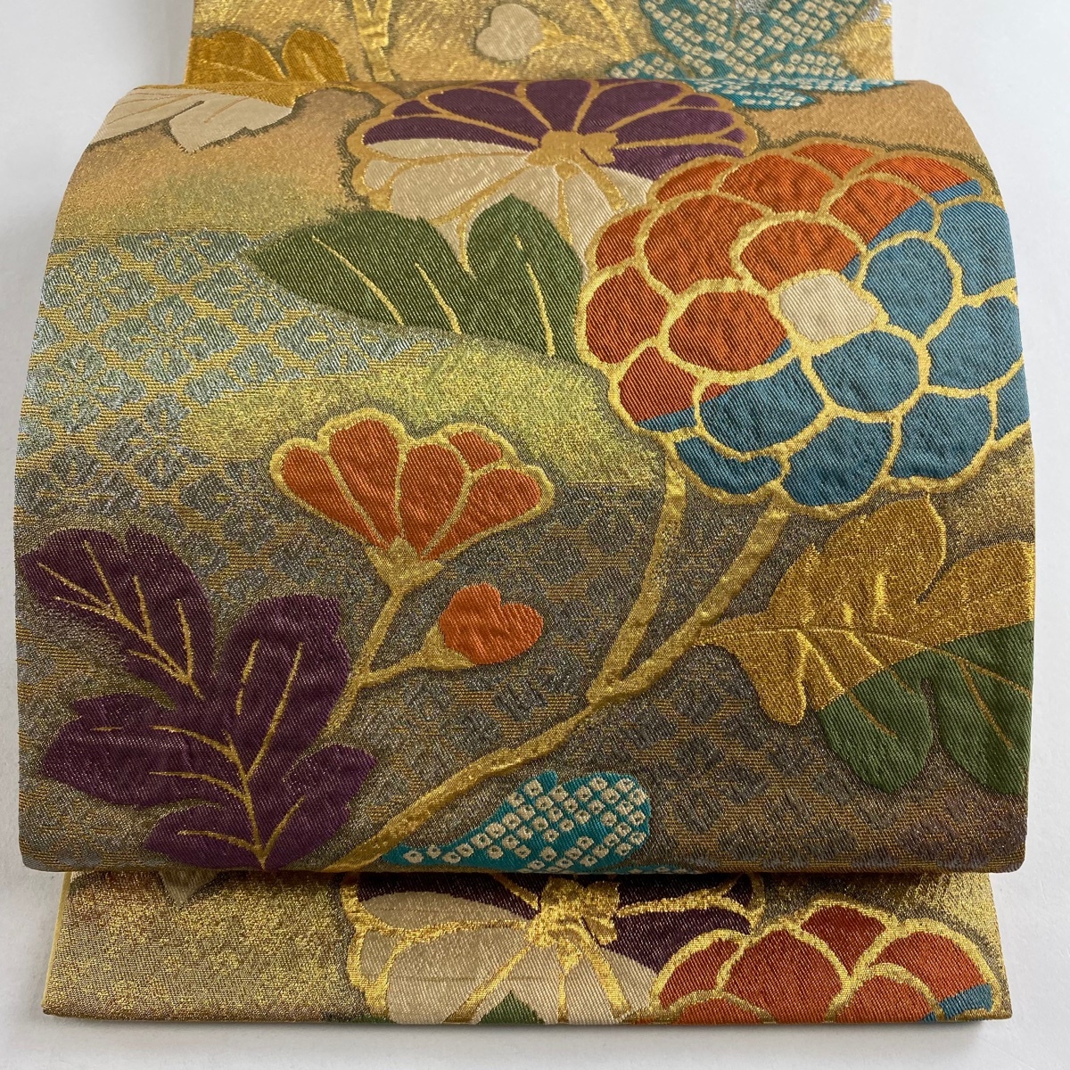> 袋帯 秀品 草花 金糸 箔 金色 六通 正絹 【中古】