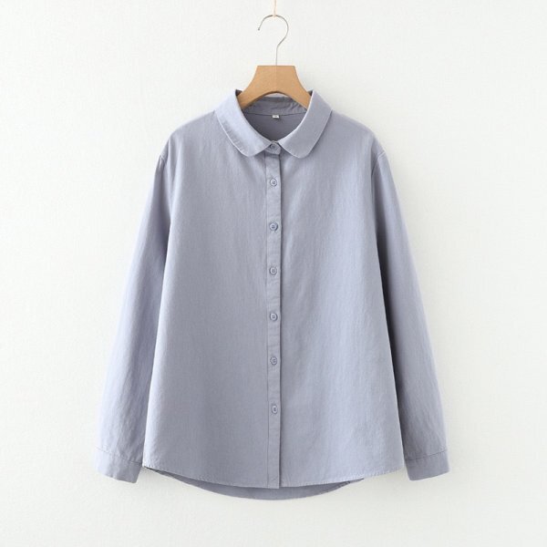 - c 2508 ワイシャツ フリーサイズ チュニック トップス ナチュラル 綿100% 通気性肌触り抜群 サラサラ ゆったり 水色系
