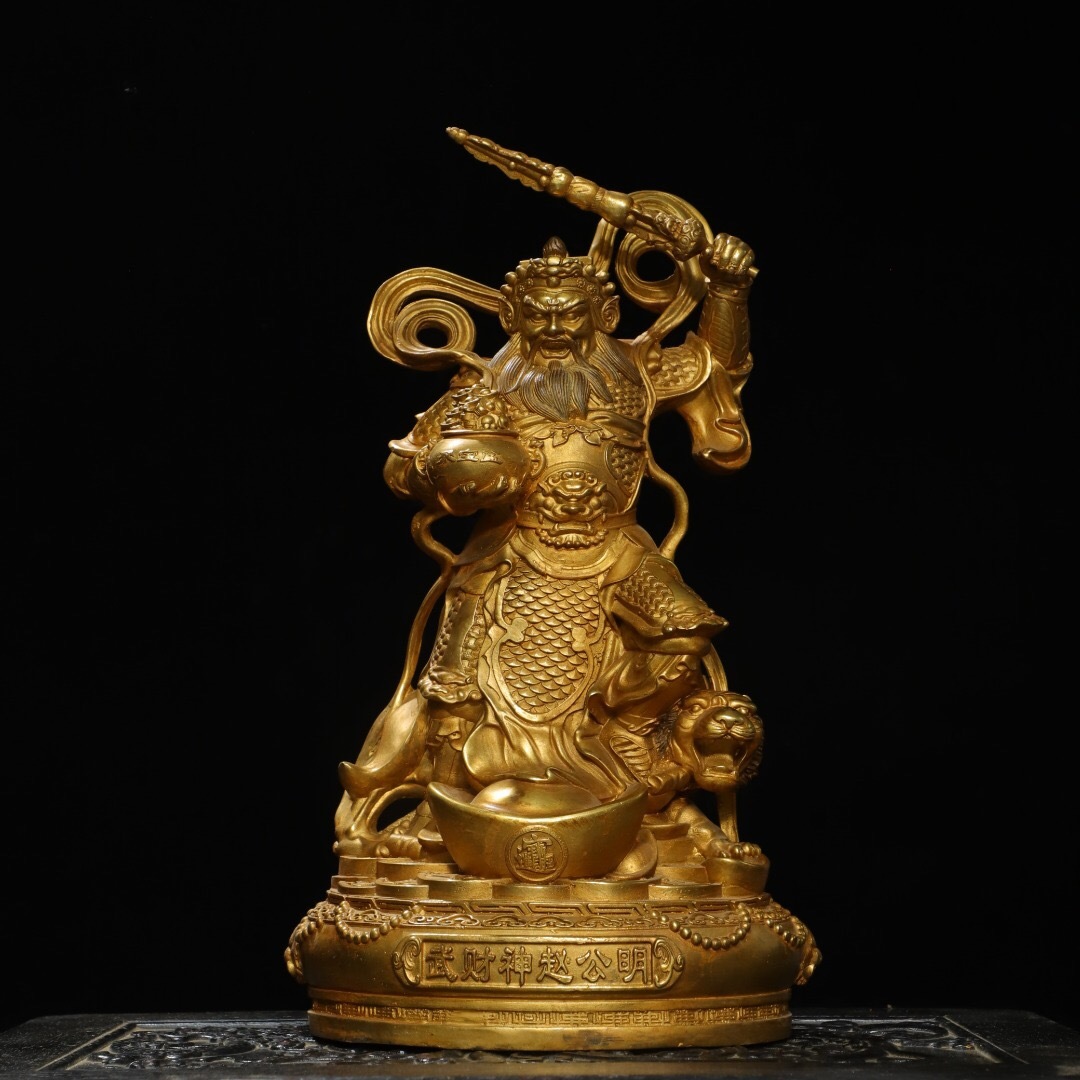 - ▽鴻▽ 銅製 塗金 趙公明像 仏像 宗教 仏教古美術 供養品 古賞物 古董品 時代物 稀少珍品 中国古玩 中国古美術