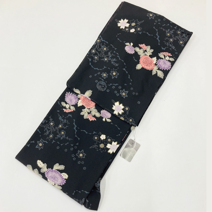 - お仕立て上がり 着物 洗える着物 小紋 袷 黒地 花柄 東レ シルジェリー