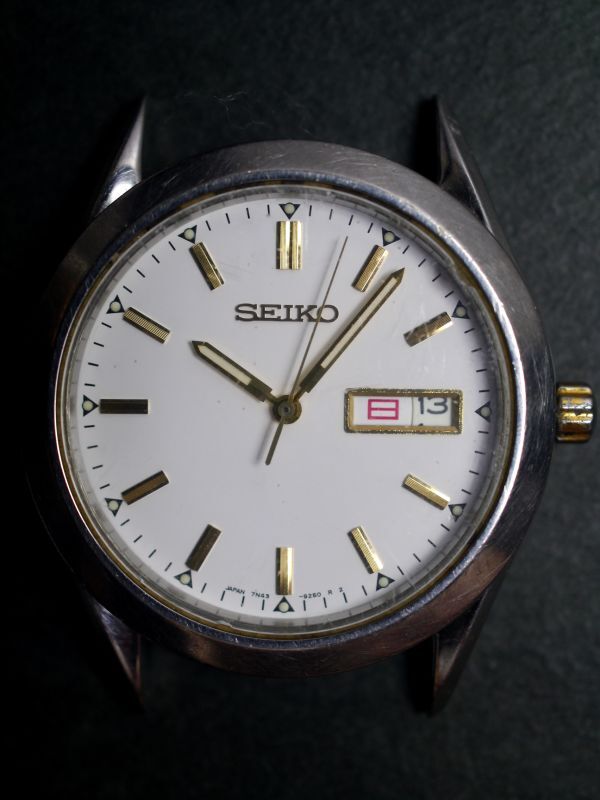 - セイコー SEIKO クォーツ 3針 デイデイト 7N43-9080 男性用 メンズ 腕時計 日本製 ab460