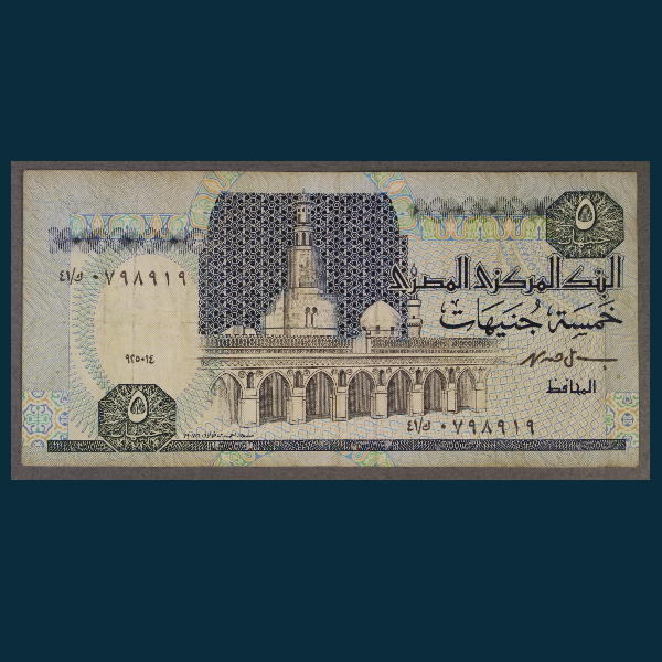 - エジプト 1981年~1987年 5ポンド紙幣 イブン・トゥールーン・モスク エジプトの神ハピ t0123