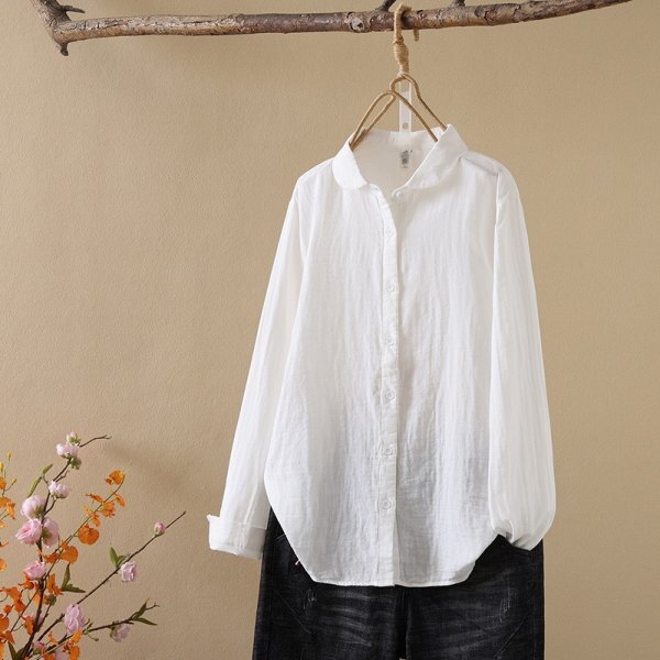- c 2508 ダブルガーゼ フリーサイズ ワイシャツ チュニック トップス ナチュラル 綿100% 通気性肌触り抜群 サラサラ ゆったり ホワイト