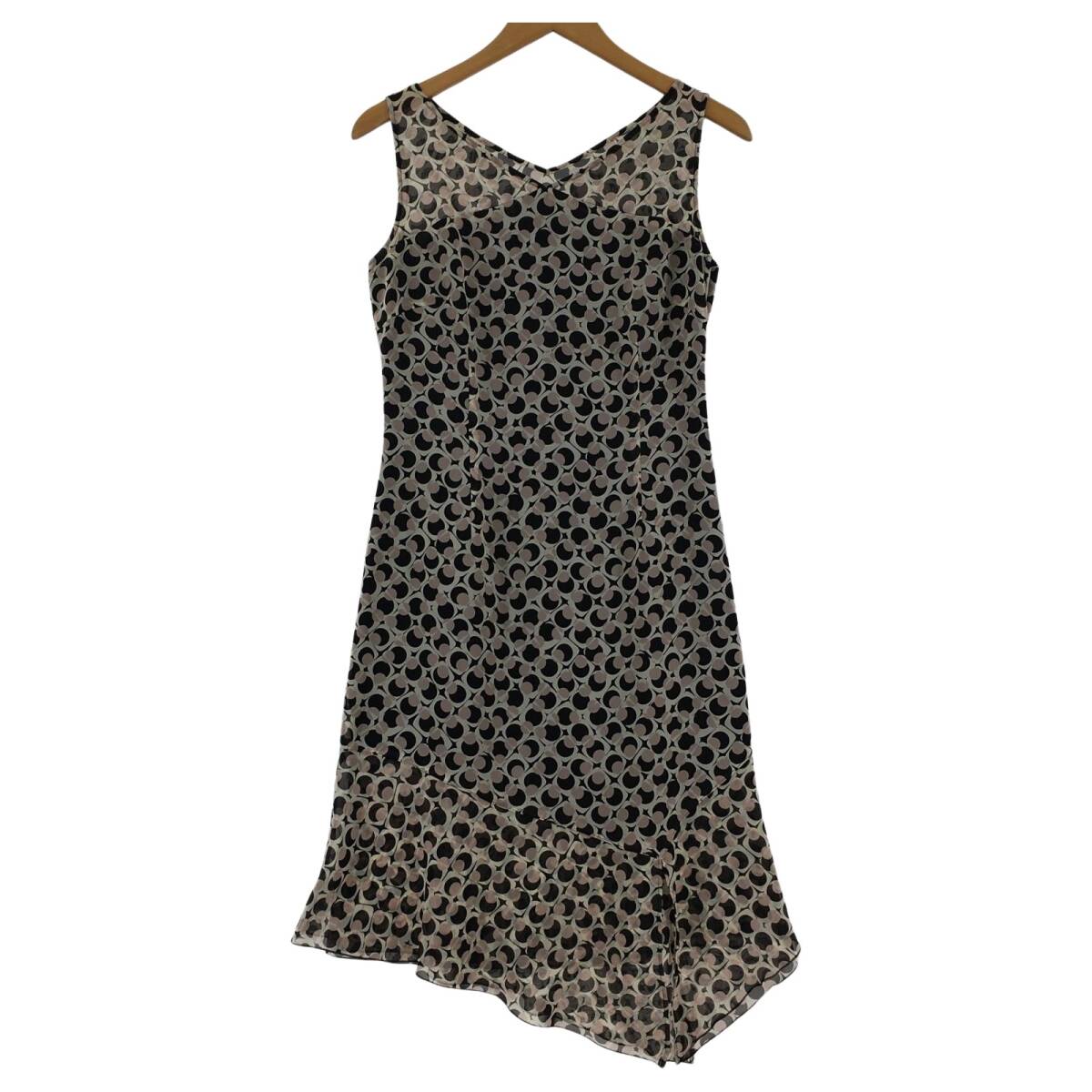 - 4℃ ヨンドシー ノースリーブ 総柄 ワンピース size38/ピンクベージュ系 ゆうパケットOK