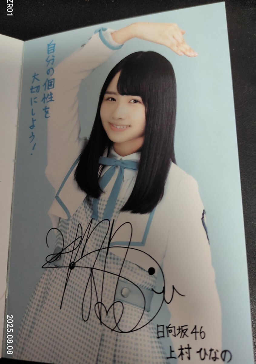 - 上村ひなの 日向坂46 ひらがなけやき メチャカリ サインコメント入り ポストカード ワンコイン