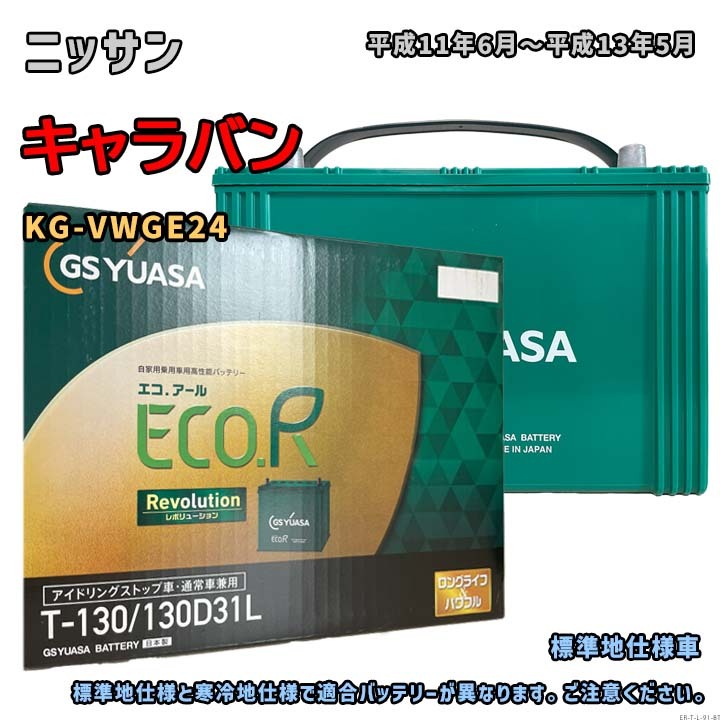 > バッテリー GSユアサ ER-T-130/130D31L ニッサン キャラバン KG-VWGE24 平成11年6月~平成13年5月 AT 対応 T-110 互換 91