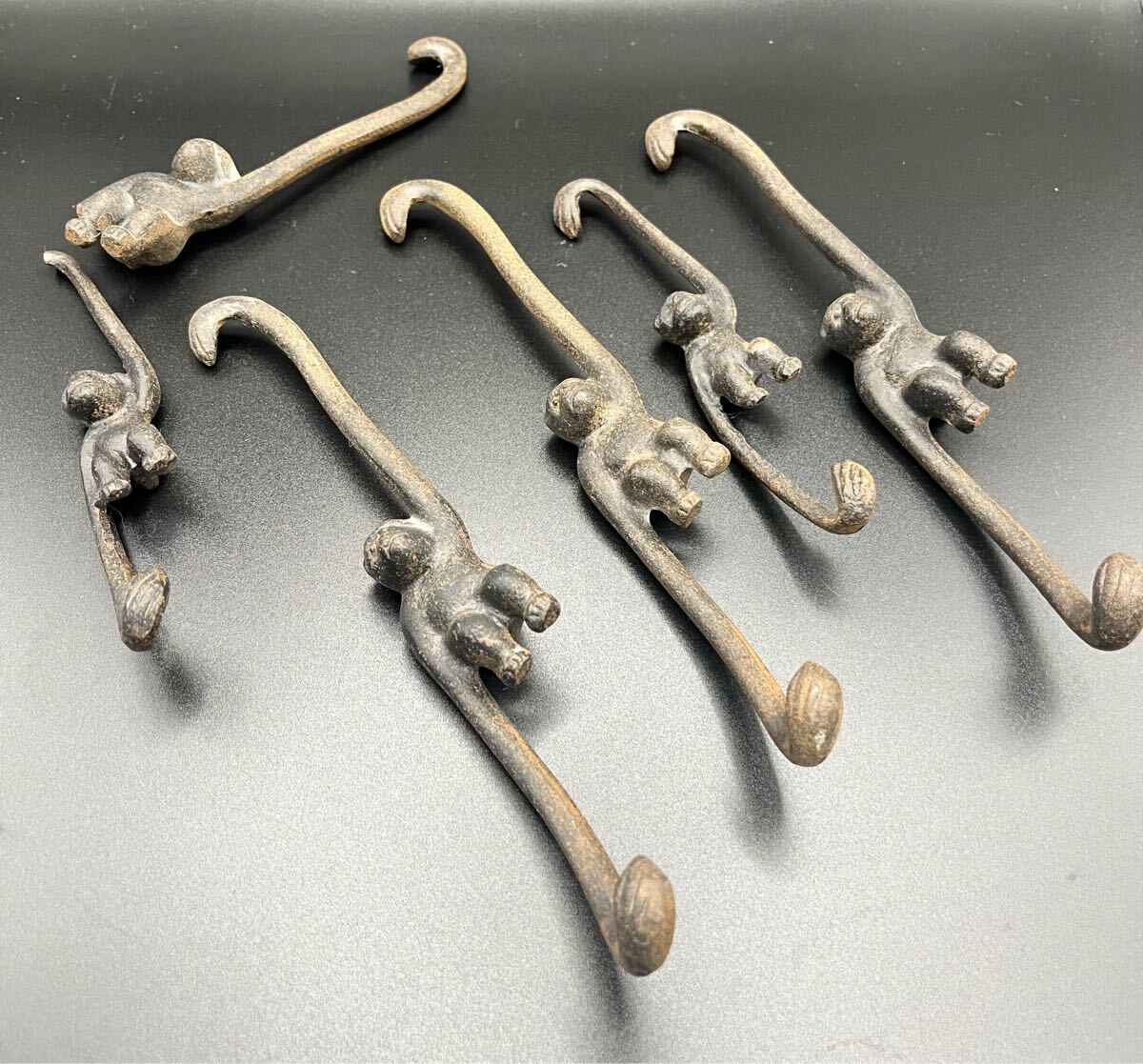 - 時代物 鋳物 猿手フック 鉄製 茶道具 釣り釜 古道具