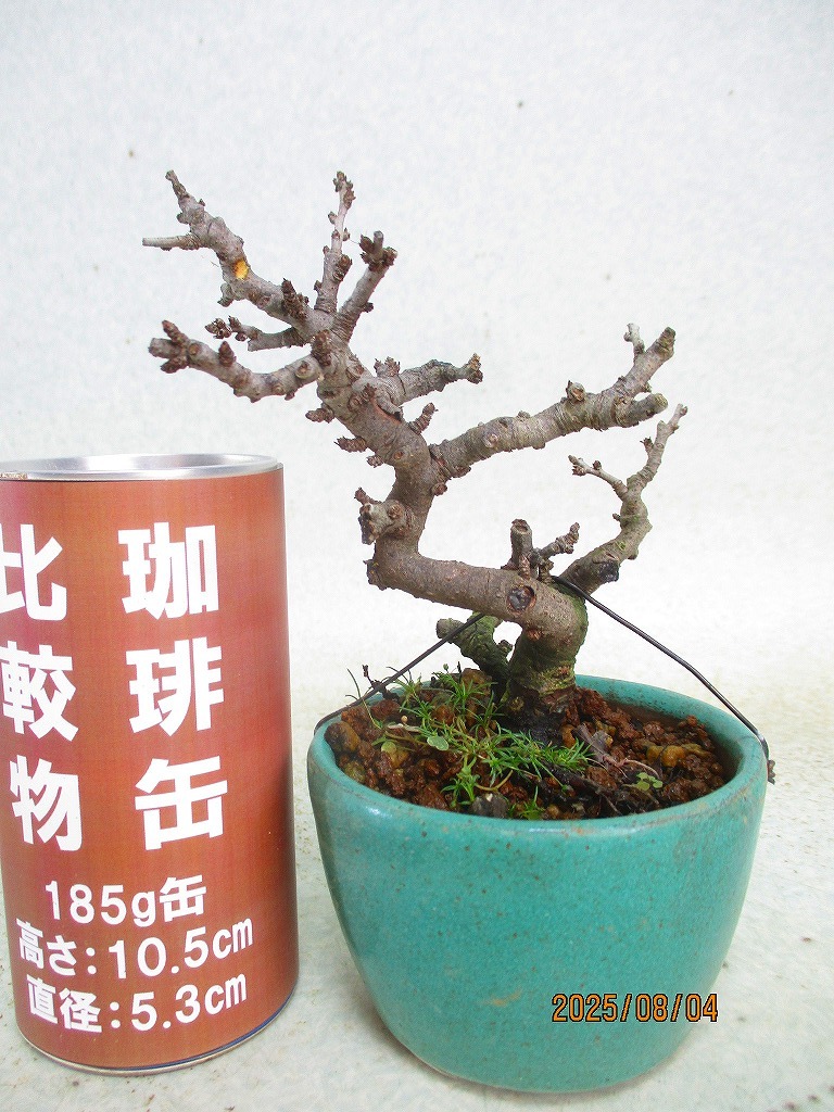 - [緑の市場] ミニ盆栽 長寿梅 赤花(826草均釉丸鉢)全高:16㎝【小型送料】*同梱包対応「まとめて取引」厳守*60サイズ送料明記