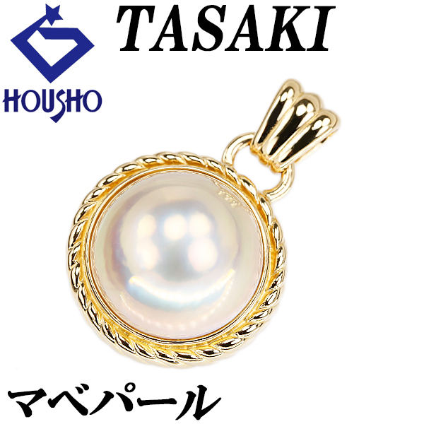 > タサキ 田崎真珠 マベパール ペンダントトップ K18イエローゴールド TASAKI ロープ ツイスト 一粒パール 送料無料 中古 宝正 902440