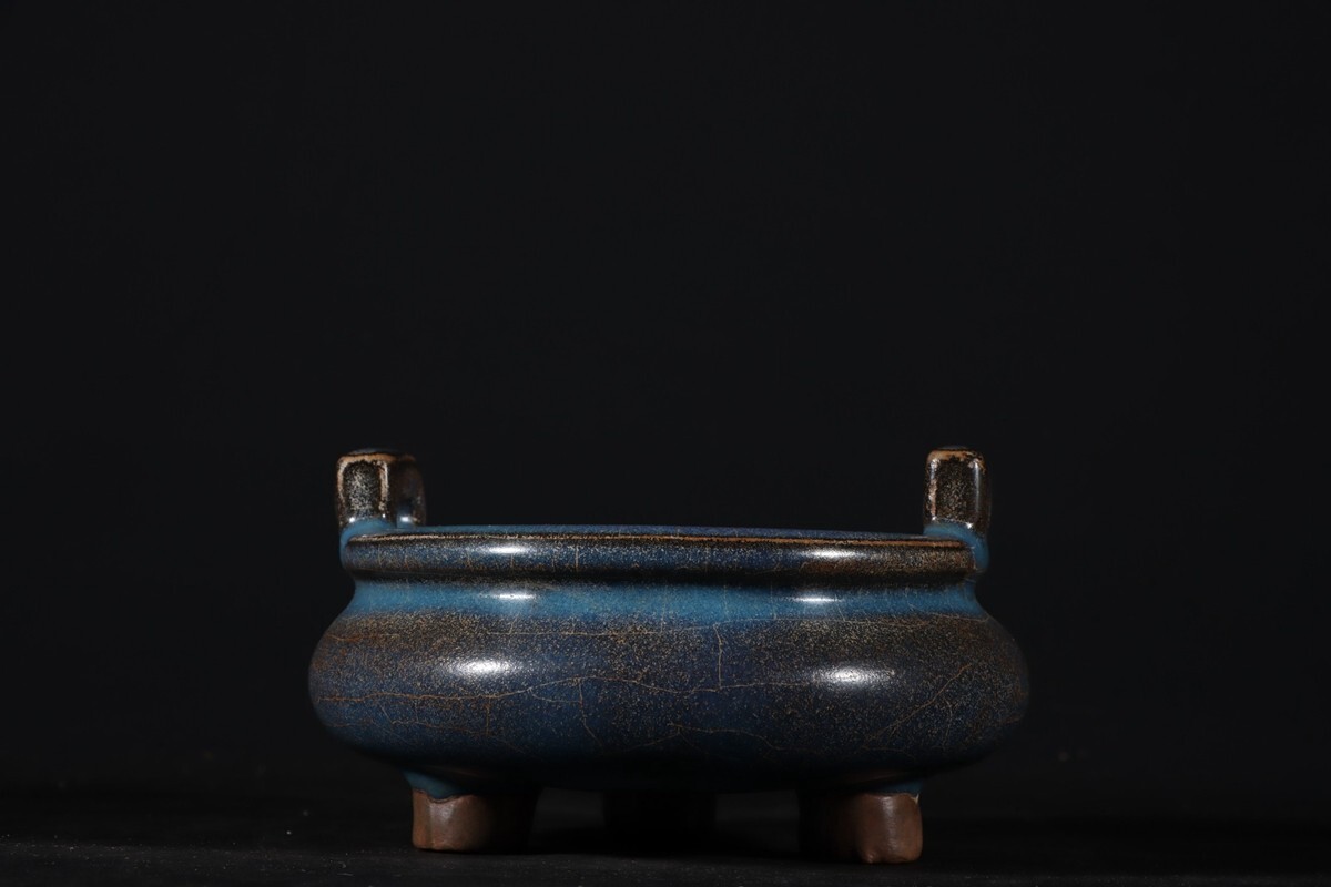 - 「宋 鈞窯 陶磁器 三足爐」染付 置物 擺件 古賞物 中国古美術 旧蔵出