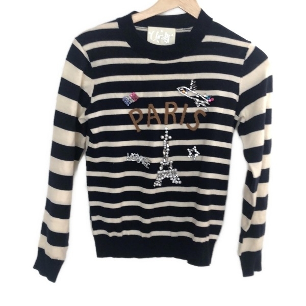 > チェスティ Chesty 長袖セーター/ニット サイズF - ダークネイビー×アイボリー レディース クルーネック/ボーダー/ビジュー/パール