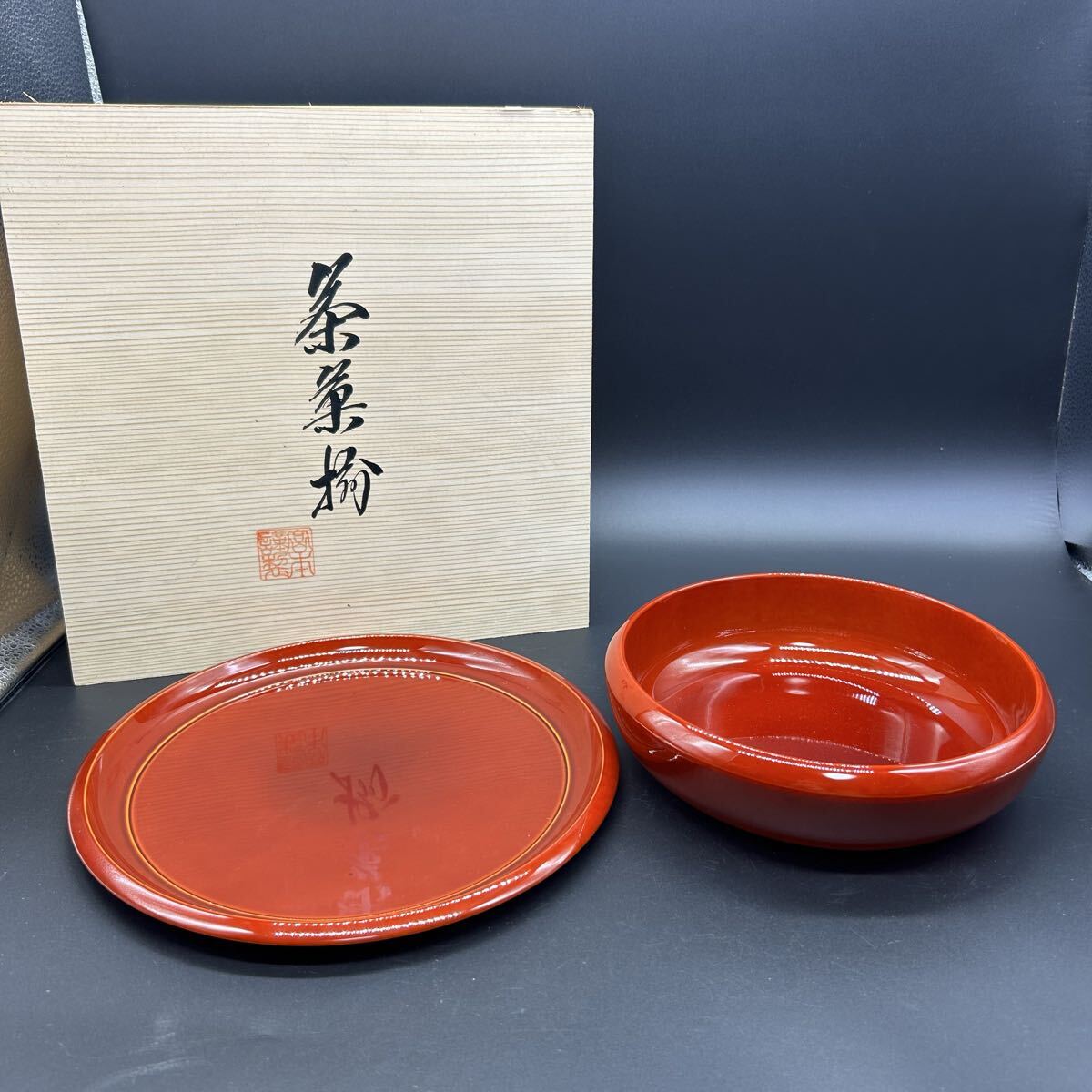 - 茶菓揃 盛鉢 お盆 春慶塗 菓子皿 菓子器 漆器 エ19