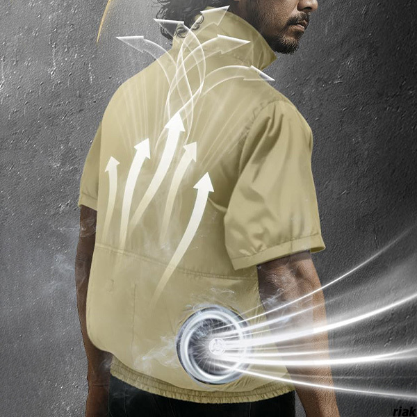 - 【4段階の風速調節機能で細かい調整で、快適さを追求】 空調服 空調作業服 半袖ファン付き 扇風服 熱中症対策 UVカット カーキ 2XL