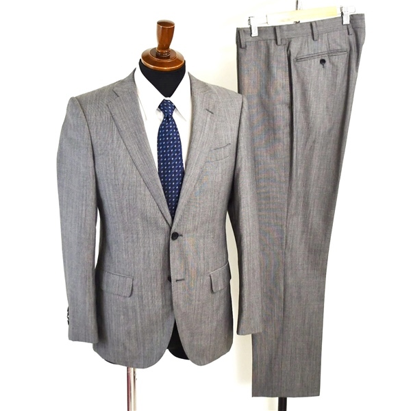 ・春夏対応。英国製シルク混生地使用。2つボタンシングル。袖口4つ釦開き見せ。背抜き。サイドベンツ。フラップポケット。ネーム刺繍なし。