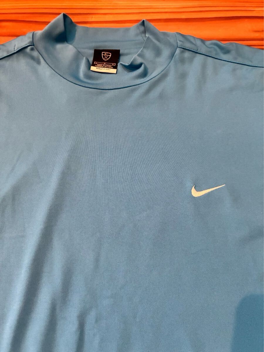 - 送料込み!!NIKE GOLF 半袖ハイネックTシャツ Lサイズ 青 ブルー 175/92A GOLF ゴルフウェア DLYーFIT ワンポイント ナイキゴルフ