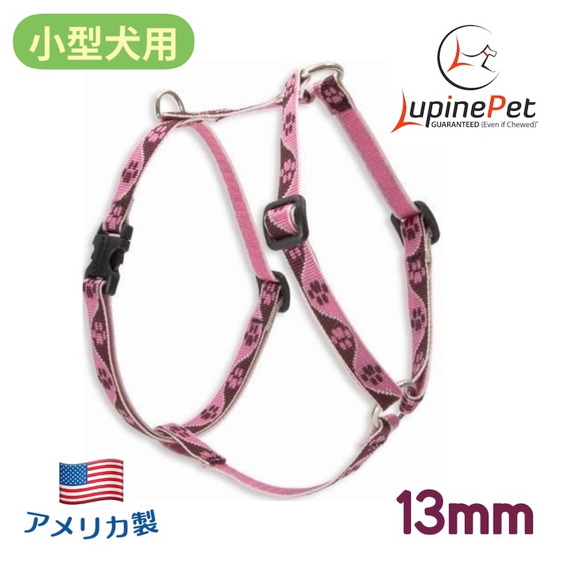 - ティクルドピンク柄・ローマンハーネス・小・胴回り23-35cm・13mm幅 LUPINEルパイン アメリカ製 軽量丈夫 小型犬 Tickled Pink
