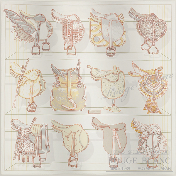 - 新品 エルメス 国内定価88,000円 カレ90 2025 S/S ”すべては鞍の中に” ブラン×ジョーヌパール×グリペルル HERMES スカーフ