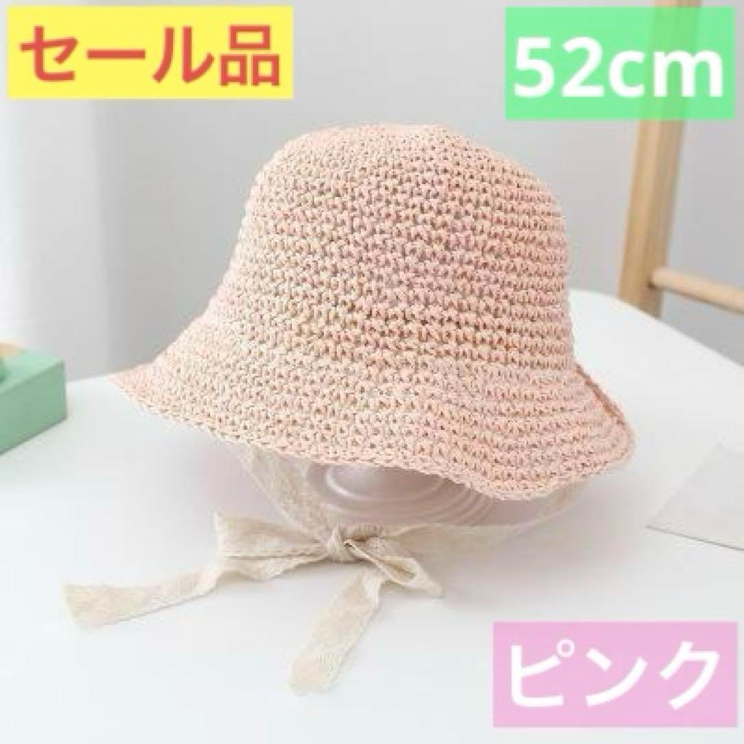 - ピンク 麦わら帽子 ベビー キッズ 3~6歳 52cm 女の子 紐 リボン付き 子供用 夏 帽子