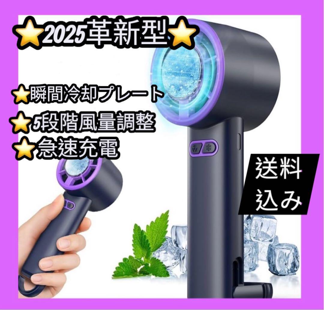 - 新品ハンディ扇風機2025革新型・瞬間冷却プレート 5段階風量調整 急速充電