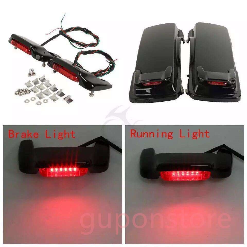 > ハーレーツーリングエレクトラストリートグライドロードキング1993-2013用オートバイハードサドルバッグ蓋LEDスポイラーキット