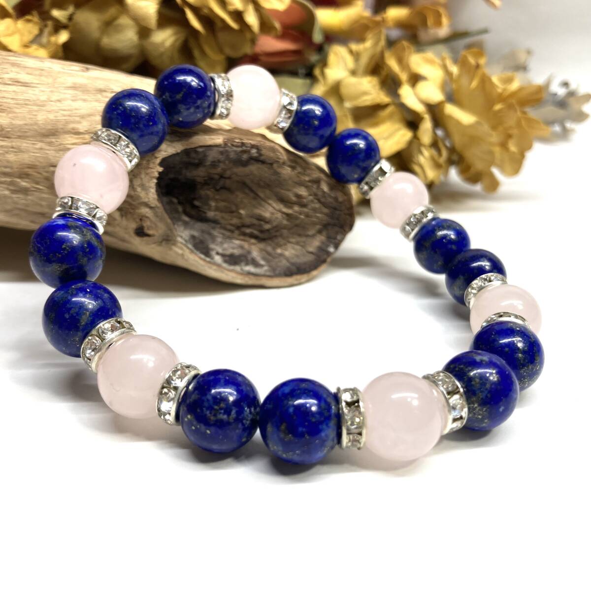 - ラピスラズリ&ローズクォーツ パワーストーン ブレスレット 天然石ブレス (シルバー) 10mm メンズ・レディース 恋愛運 ☆