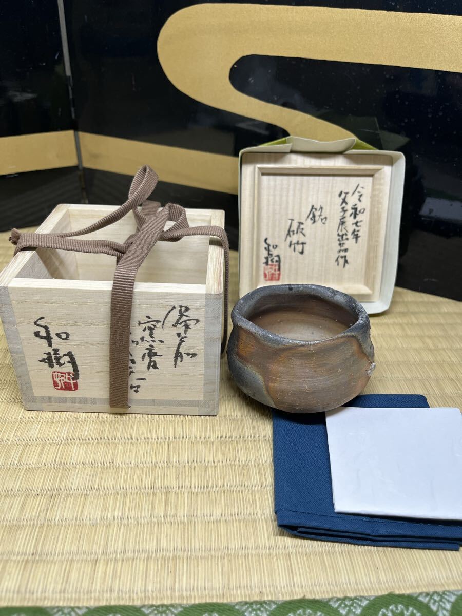 - 備前 酒器の神様 中村六郎 孫 人気作家 中村和樹 阪急 酒呑 ぐい呑 個展作品 銘 破竹
