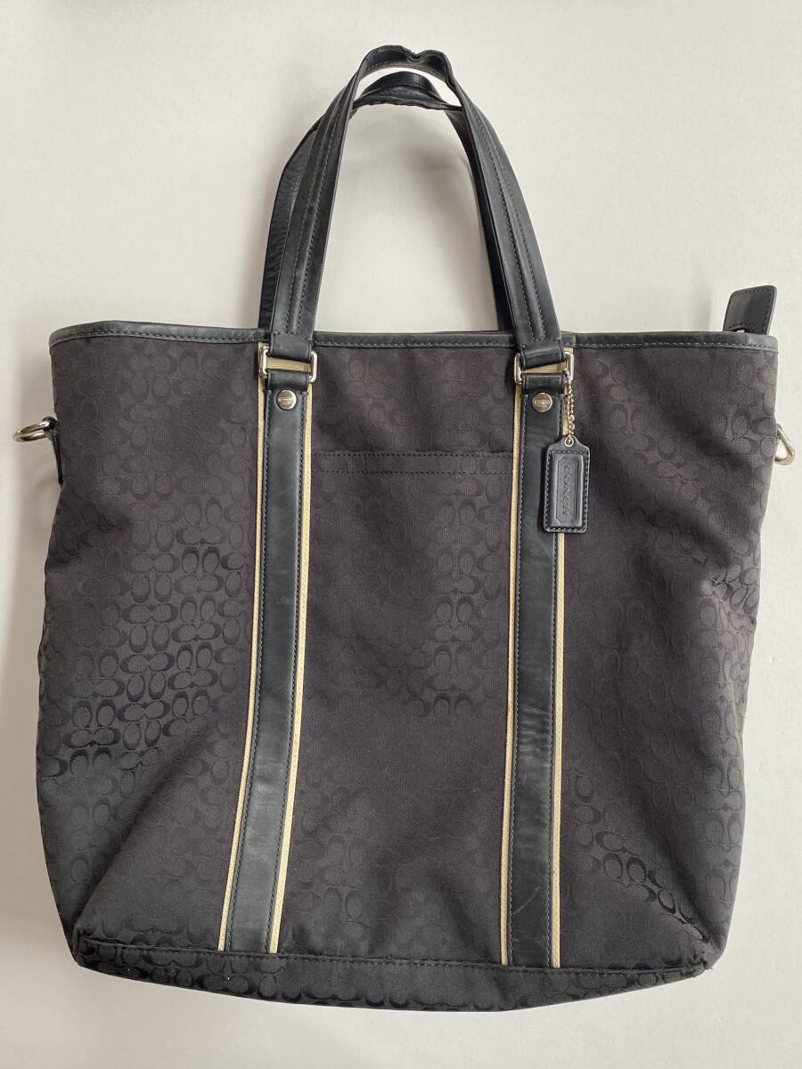 > 【即決/難あり】 COACH トートバッグ F77142 シグネチャー キャンバス ブラック ショルダーストラップ欠品 コーチ