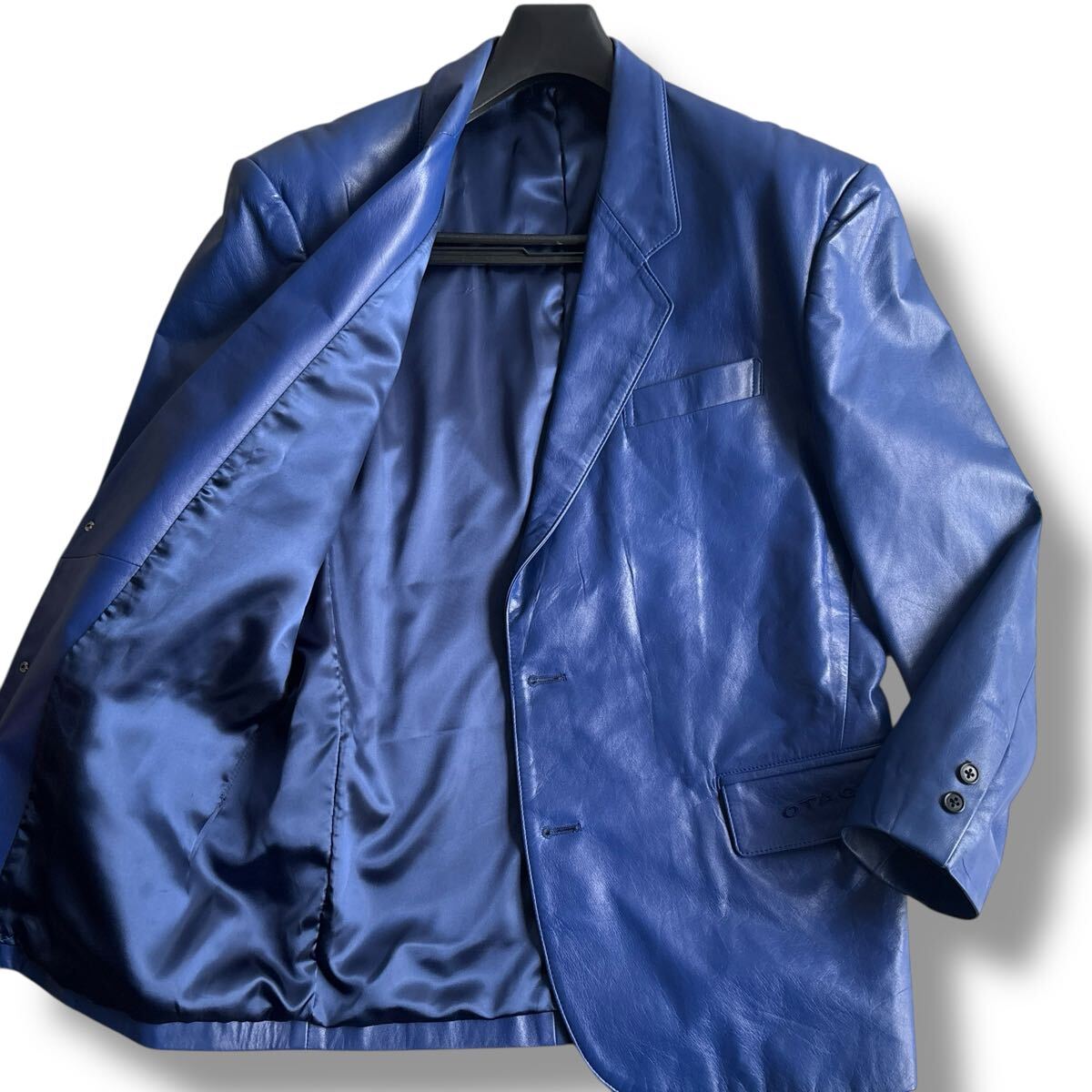 > 極美品■OTAGIRA LEATHER【M】本革 レザー テーラードジャケット レザージャケット ブルー 青 世田谷ベース 所ジョージプロデュース 日本製