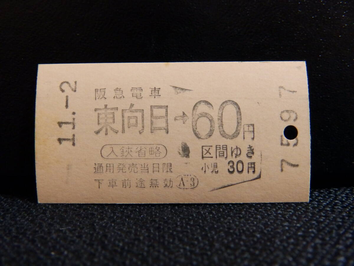 - 阪急電車 券売機乗車券 東向日→60円区間ゆき 11月2日 裏磁気
