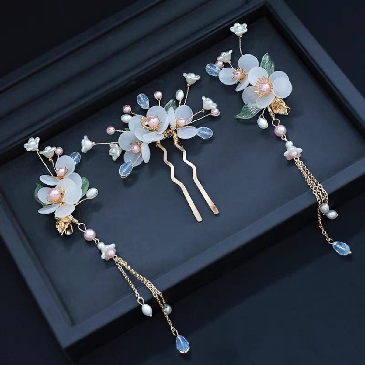 - 簪(かんざし) 作家 sakura 簪 髪飾り《カザグルマ(クレマチス) 》 3点セット チェコガラス