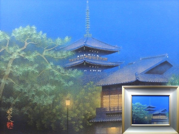 - 真作/岩波昭彦/「八坂塔」/日本画/6号/額装品/金泥仕様/共シール付/風景画/夜景画/作家物/美術品/師:松尾敏男/無名会会員/院展特待