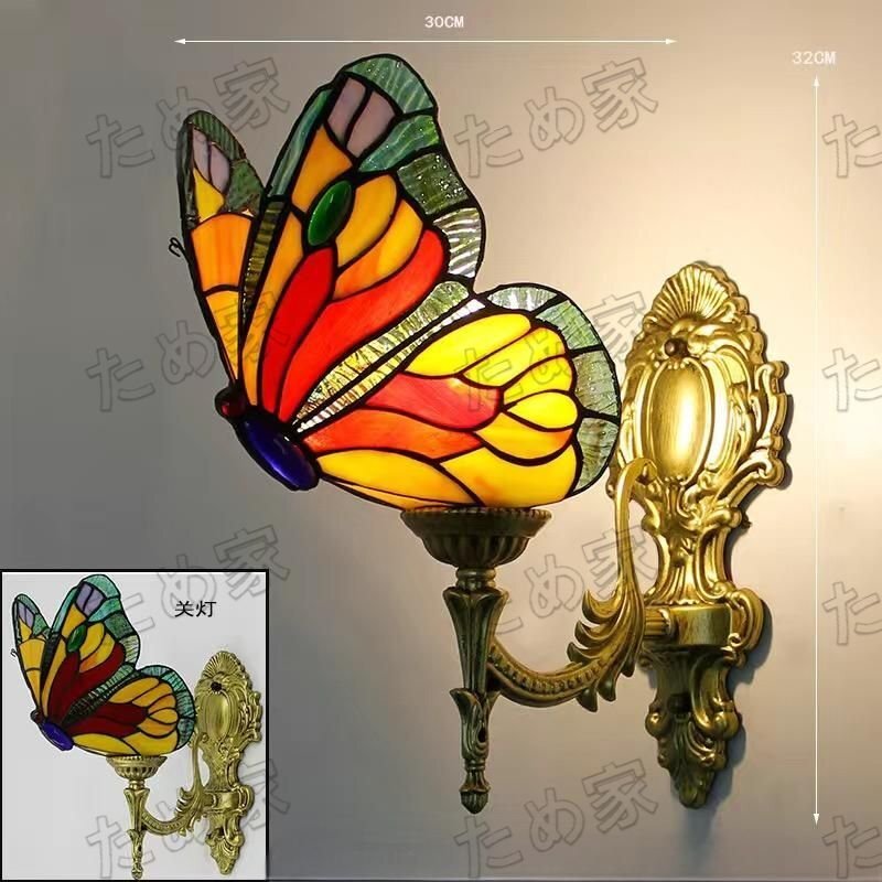 - 01 チョウチョウ ステンドグラスランプ ステンドグラス ペンダントライト壁掛け照明ガラス工芸品 豪華 単灯 電球つき