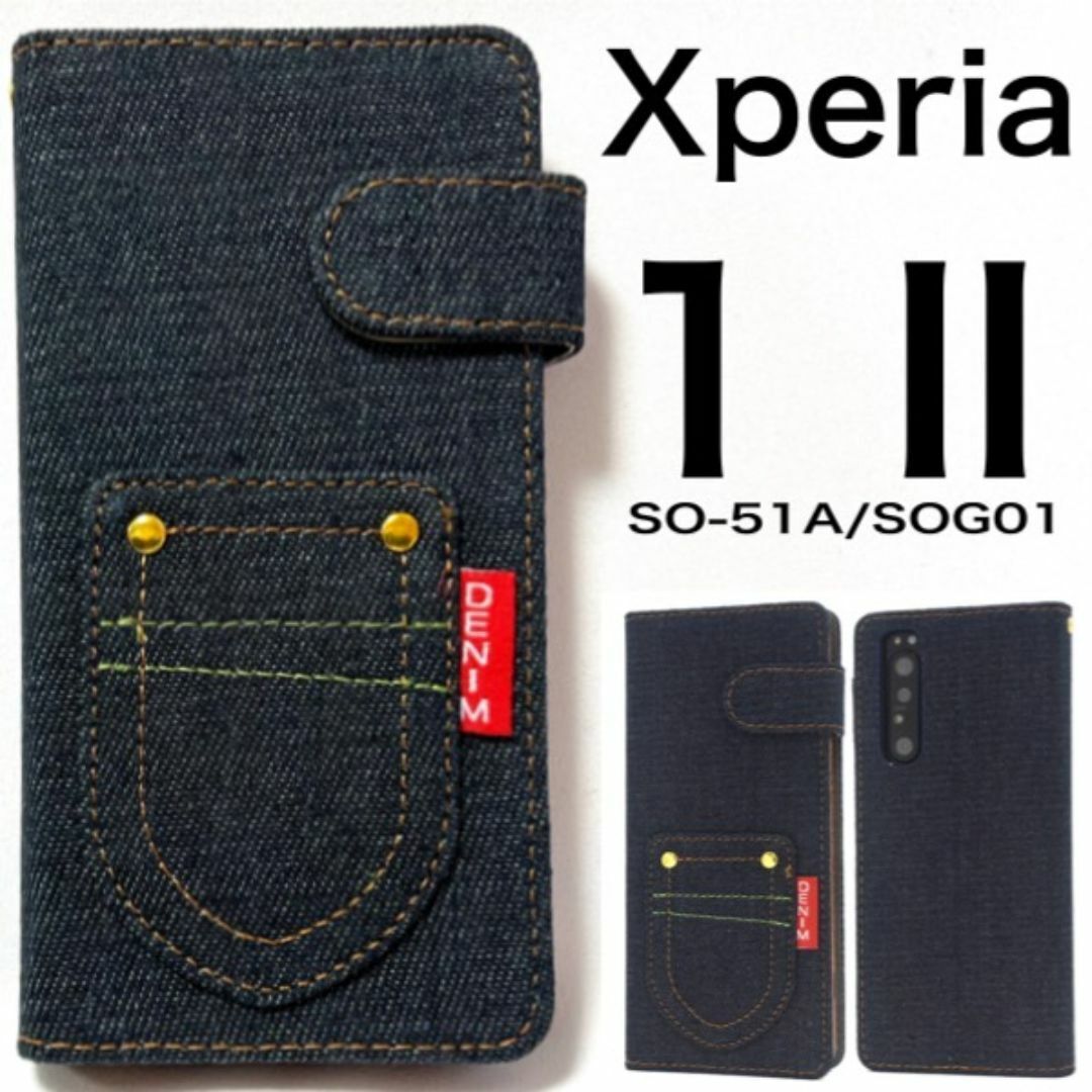 > Xperia 1 II SO-51A/SOG01 ポケットデニム手帳型ケース /エクスペリア スマホケース