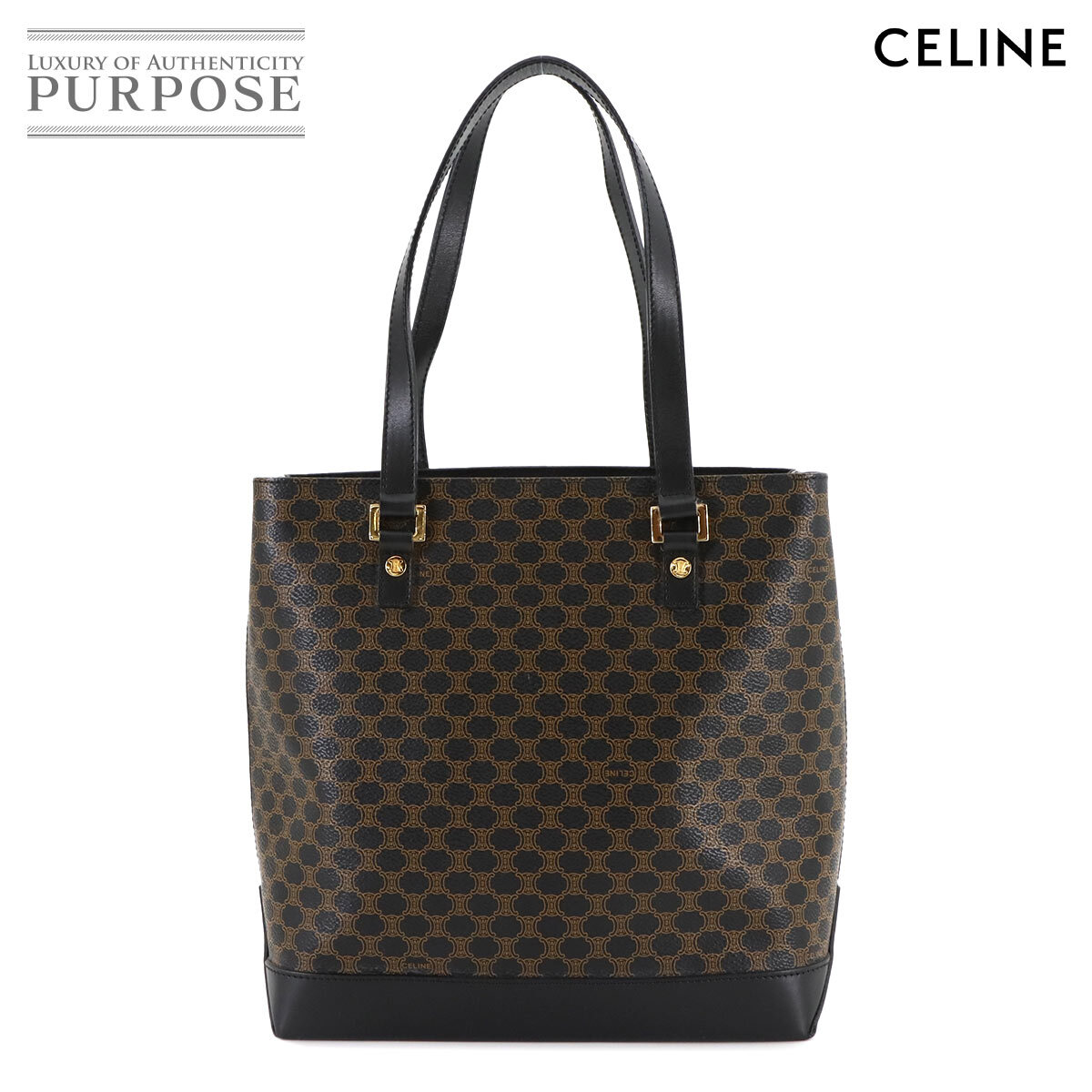 > 新品同様 セリーヌ CELINE マカダム トート バッグ PVC レザー ブラック ブラウン ゴールド 金具 ヴィンテージ Macadam Tote Bag 90289294