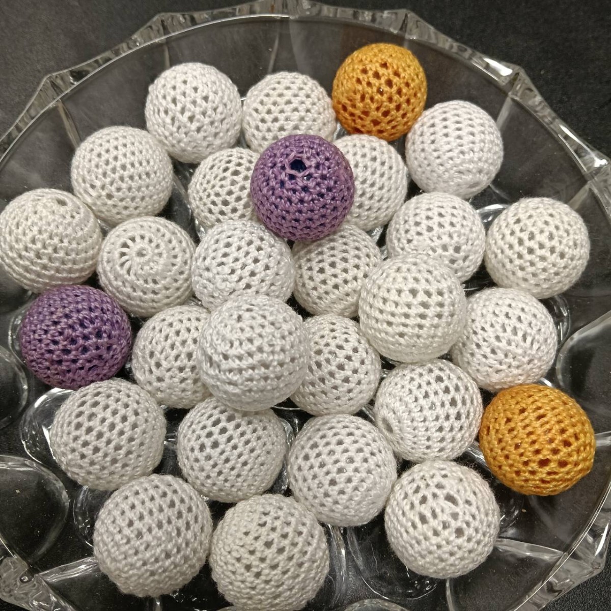 - ☆未使用 大量 プラビーズ 糸玉 ラウンド 約163g 24mm 白 黄色 紫 ヴィンテージ 手芸 パーツ アクセサリー ネックレス イヤリング S-344