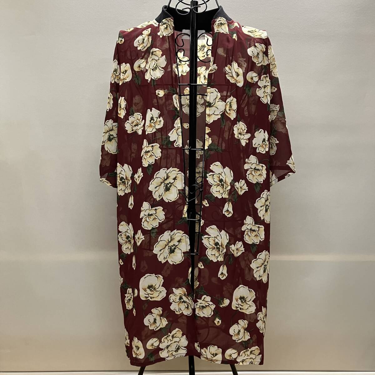 - Leahmatin(リアマティン)半袖カーディガン 花柄・エンジ系 Mサイズ