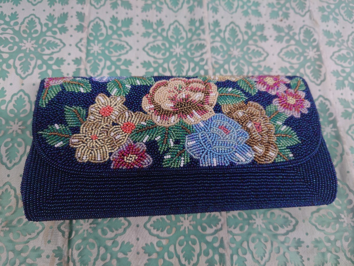 > ● レトロ ヴィンテージ 総 ビーズバッグ クラッチバッグ ハンドバッグ パーティーバッグ 素敵な 花柄 和装 洋装 着物 バッグ 美品 ③