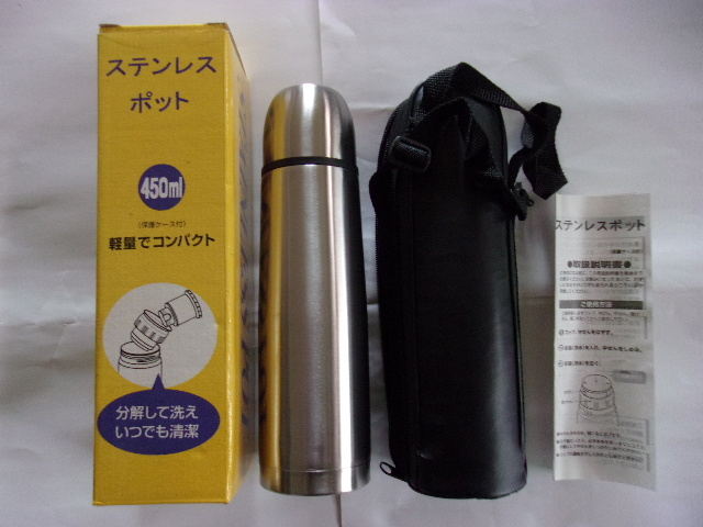 - C-694 新品 ステンレスポット 保護ケース付 450ml ステンボトル/軽量/コンパクト/広口/水筒/レジャー/雑貨/遠足/部活/スポーツ