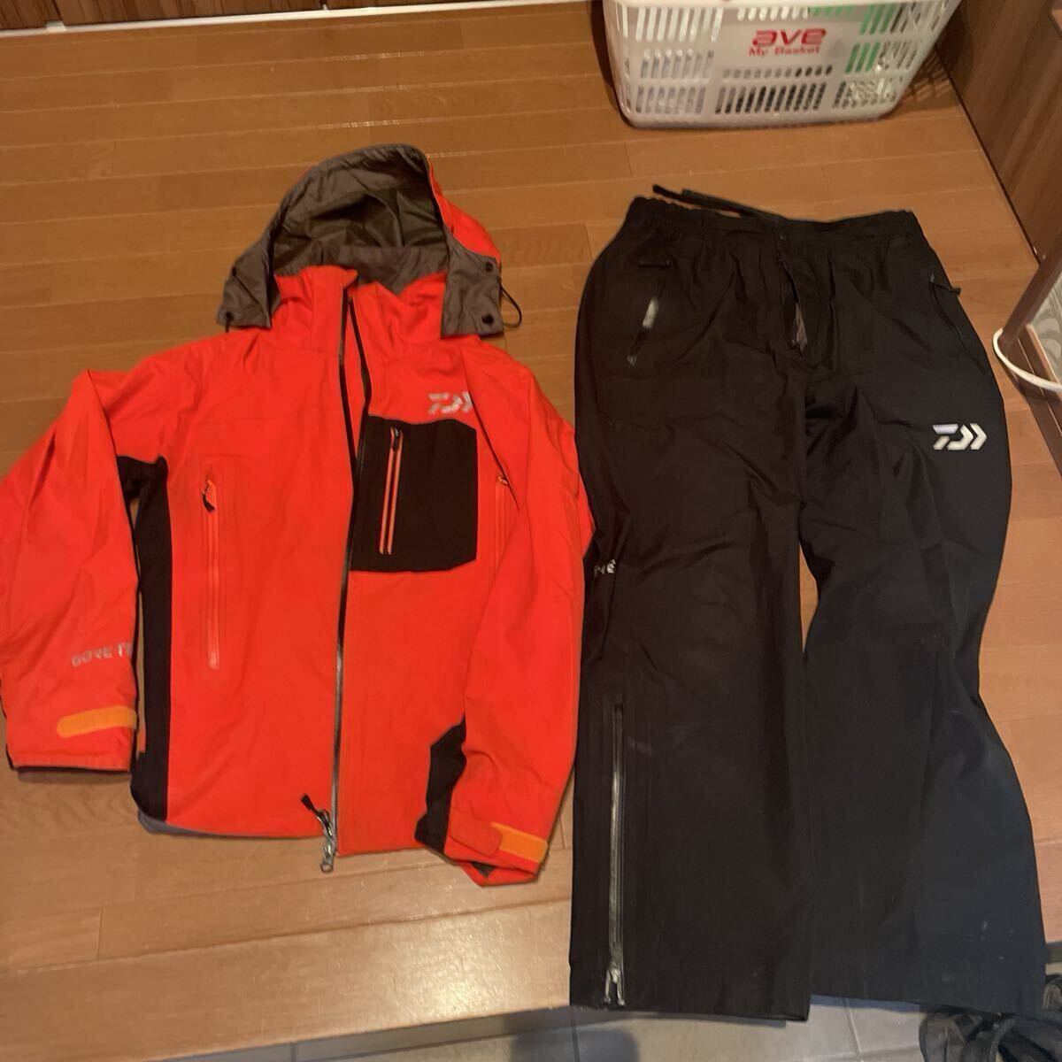 - ダイワ ゴアテックスプロダクト パックライトレインスーツ DRー1908 Mサイズ オレンジ 訳あり中古品