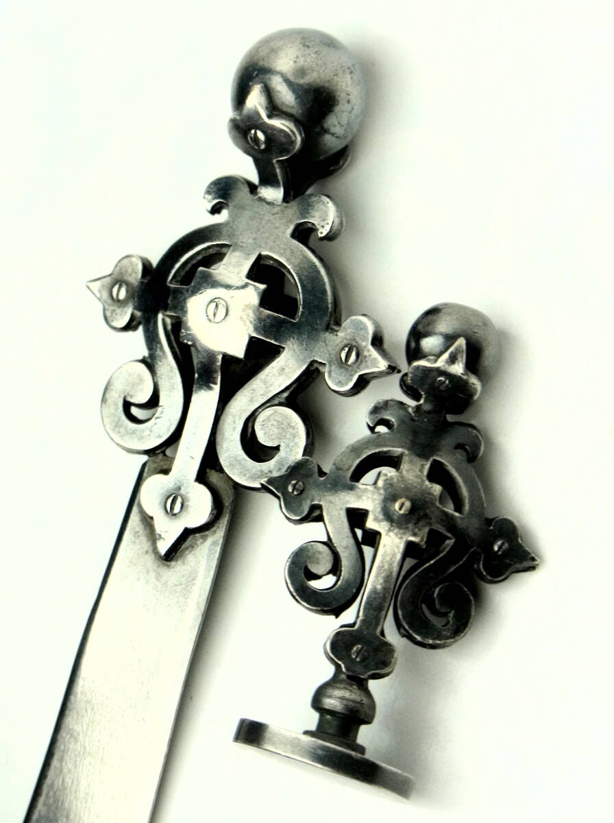 - フランスアンティーク ペーパーナイフと封蝋 カシェ 鈍色の十字架クロス 紋章文 2点セット 西洋骨董 クロネコ宅急便発送