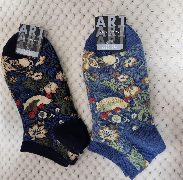 - 送料230円 新品 未使用 タグ付 ウイリアムモリス レディース アートソックス スニーカー丈 23〜25cm 2足 William Morris いちご泥棒