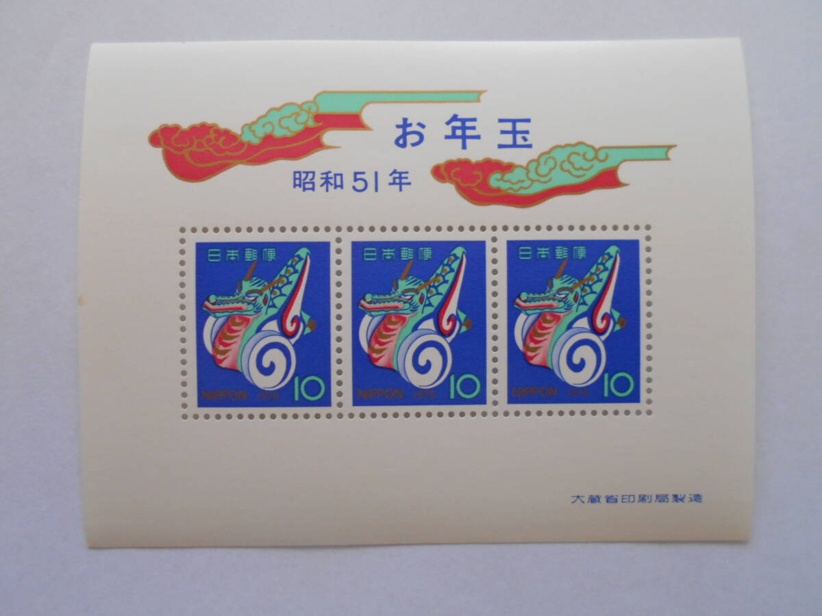 > 1976年お年玉切手 たつぐるま 未使用10円切手小型シート(976シ)【経年変色かなりあり】