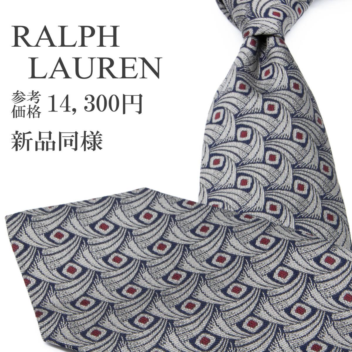 > 送料無料 ラルフローレン ネクタイ レギュラータイ ジャガード 新品同様 シルク シルバー 赤 レッド ネイビーブルー 光沢 ブランド P413