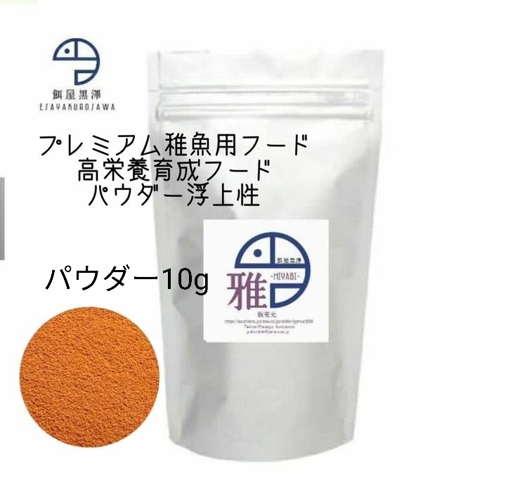 > 【餌屋黒澤】針子の餌生存率向上・成長促進・メダカ用高栄養育成フード「雅」パウダー10g浮上性楊貴妃幹之透明鱗ヒカリダルマヒレ長スワロ