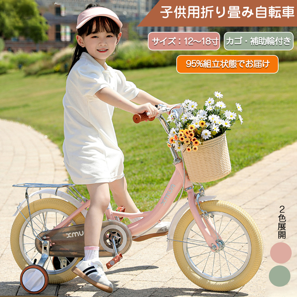 - 『落札後カラー提示』【14寸サイズ選択】14インチ女の子 子供用自転車 可愛いレトロキッズバイク 低学年 手編み藤前かご qs-153