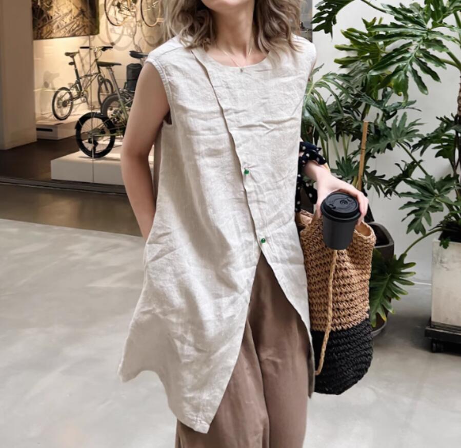 - 人気推薦 /上品 ノースリーブ チュニック 前スリット 夏 レディース トップス ゆったり 不規則 涼しい 大きいサイズ 着痩せ/杏