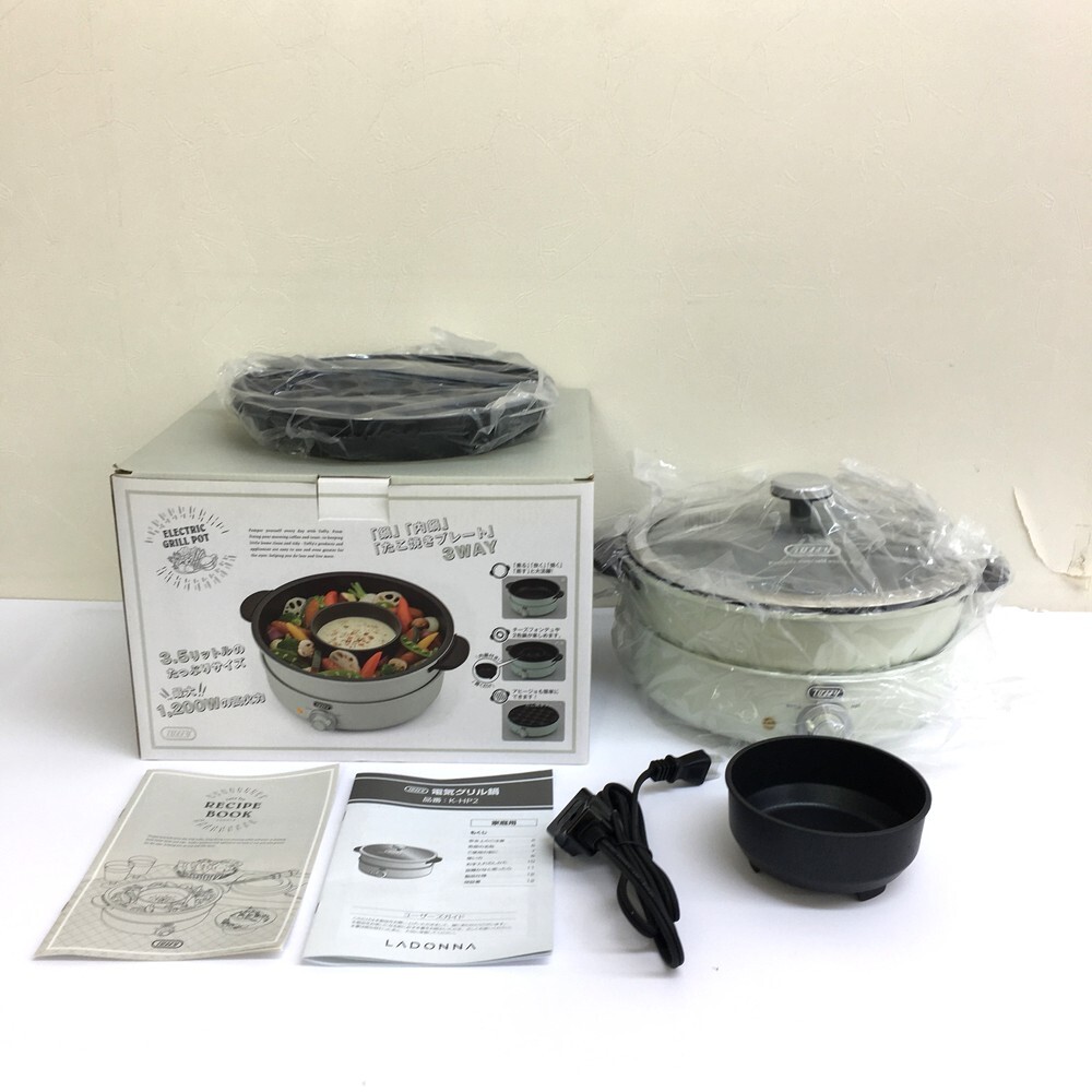 - 【同梱不可】【100】未使用品 LADONNA ラドンナ K-HP2-AW アッシュホワイト Toffy トフィー 電気グリル鍋 たこ焼きプレート キッチン家電