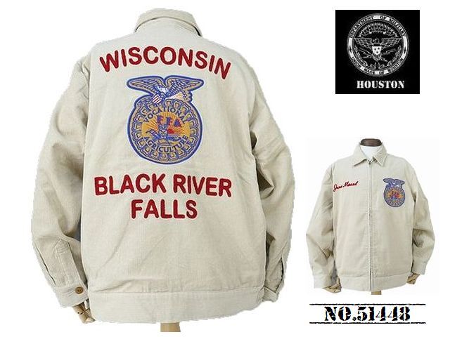 > 【送料無料 28%OFF】HOUSTON ヒューストン コーデュロイ刺繍 FFAジャケット NO.51448 NATURAL_Lサイズ