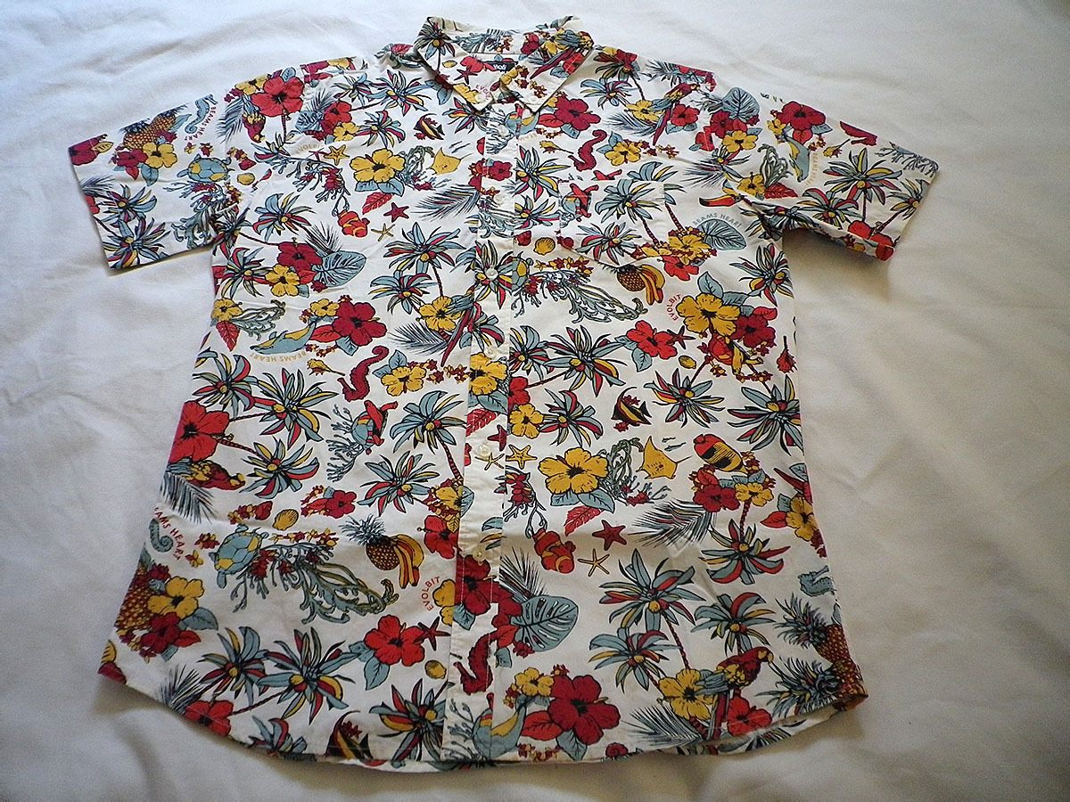 - ■古着■「BEAMS HEART」ビームス・コットン半袖BDシャツ□Lサイズ相当□南国~トロピカル風◆B