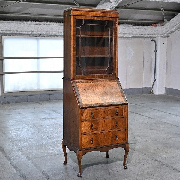 - ★ 英国ヴィンテージ ブックケース ビューロー マホガニー材 収納 引出し 飾り棚 本 ライティング 猫脚 象嵌 リビング ダイニング 書斎